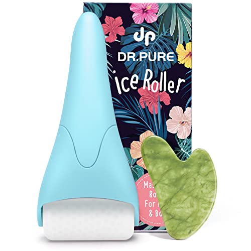 Dr. Pure Ice Roller for Face Massage, Jade Facial Tools for Reduce Puffiness Anti Wrinkle Relief Tighten Skin, Face Icing Massager Facial Roller, Women Skin Care Tool Blue + Southern Jade - Cyber Clinic