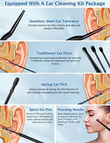 KIEUIENK Ear Wax Removal Tool with Light and Camera, 1296P HD Ear Cleaner with 8 Pcs Professional Ear Curette Earwax Removal Tools Set and Cleaning Brush, Ear Cleaning Tool for iOS & Android Phones - Cyber Clinic