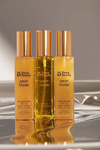 Rinna Beauty Dryp Tease Dry Body Oil Spray - Shimmering - Helps Moisturize Dry Skin, Smooth Wrinkles, & Anti-Aging - Vegan, Cruelty-Free, & Paraben-Free - 3.4 Fl Oz - Cyber Clinic