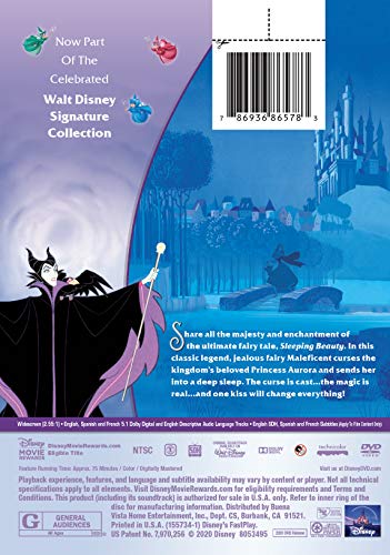 Sleeping Beauty admin, November 4, 2023 Price: $19.99 - $14.99(as of Nov 04,2023 20:00:44 UTC – Details) Share all the majesty and enchantment of the ultimate fairy tale, SLEEPING BEAUTY. In this classic legend, jealous fairy Maleficent curses the kingdom’s beloved princess Aurora and sends her into a deep sleep. The curse is cast…the magic is real… and one kiss will change everything!|In the original story, Princess Aurora sleeps for 100 years before being awakened by a prince’s kiss. In the Disney version, Prince Philip comes to her rescue much sooner.|George Brun’s orchestral score, which was nominated for an Academy Award®, expertly blended famous themes from Tchaikovsky’s ballet.|With a budget that exceeded $6 million in 1959, this was Walt Disney’s most lavish and expensive animated feature to date.|Determined to make the characters as realistic as possible, Disney had a live action film shot with actors posing as Sleeping Beauty, the Prince, and Maleficent, for the animators to use.|New York Times critic Bosley Crowther called the fight between Prince Philip and Maleficent “the noisiest and scariest go-round he [Disney] has ever put into one of his films.” Aspect Ratio : 2.55:1 MPAA rating : G (General Audience) Product Dimensions : 0.6 x 5.3 x 7.4 inches; 2.72 Ounces Item model number : D155734D Director : Clyde Geronimi Media Format : NTSC, Subtitled Run time : 1 hour and 15 minutes Release date : January 14, 2020 Actors : Mary Costa, Eleanor Audley, Barbara Luddy, Taylor Holmes, Bill Shirley Dubbed: : French, Spanish Subtitles: : English, French, Spanish Language : English (Dolby Digital 2.0), English (Dolby Digital 5.1), Spanish (Dolby Digital 5.1), French (Dolby Digital 5.1) Studio : WALT DISNEY ANIMATION ASIN : B07ZLJ6KMC Writers : Erdman Penner Country of Origin : USA Number of discs : 1 Health News